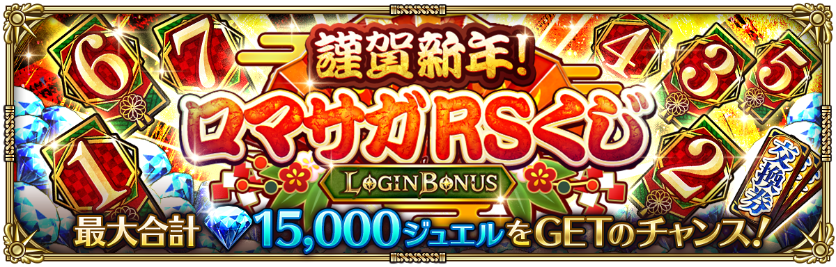 期間中、最大15日間ログインで「ロマサガRSくじ交換券[期間限定] ×15」をプレゼントいたします。