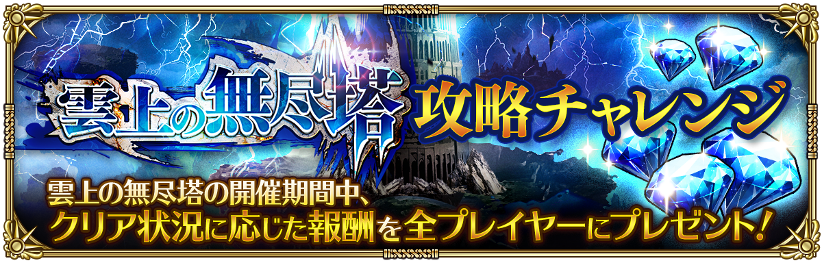 期間中、「第3回 雲上の無尽塔」の特定階層のクリア人数に応じて、最大1,500ジュエルをプレイヤー全員にプレゼントいたします。