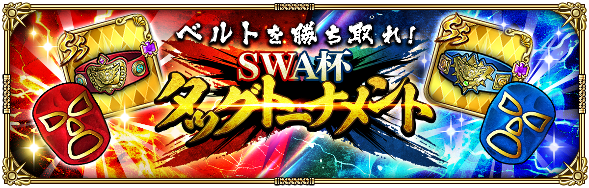 期間限定イベント「激突!SWA杯争奪タッグトーナメント」にて、レッドマスク、ブルーマスクを集めてキャンペーンに参加できます。